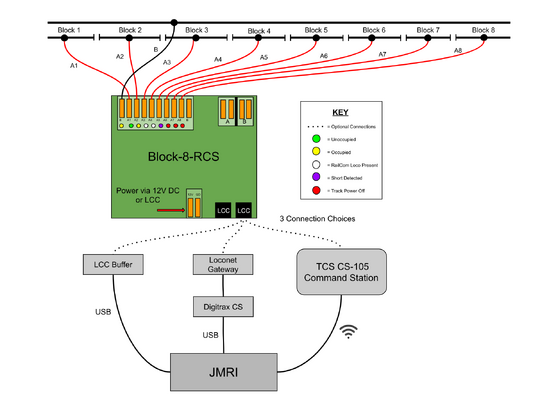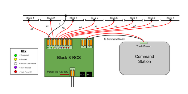 The Block-8-RCS is an 8 Channel Short Circuit Protector with RailCom® and Block Occupancy Detection. The Block-8-RCS features LCC® connectivity for seamless integration with your CS-105 or LT-50 command station.